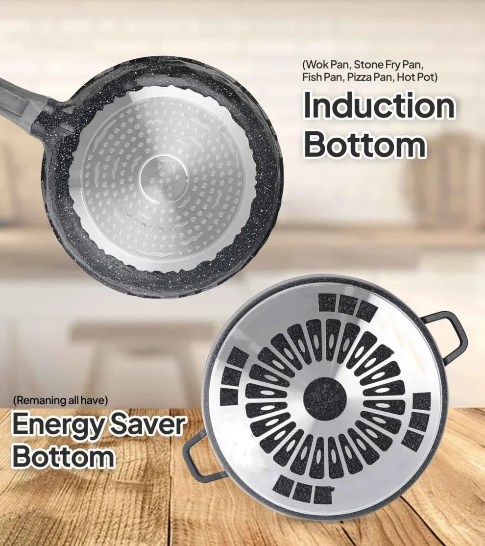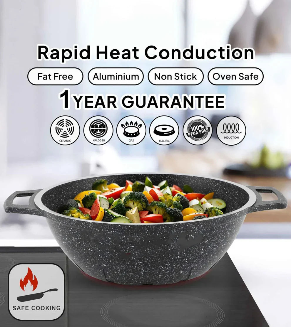 - -Built to last, safety & healthy with safety for your family in mind, the saucepan is made with 100% PFOA free good quality aluminium construction along of eco friendly granite coating, meaning no harmful chemicals are released during cooking.